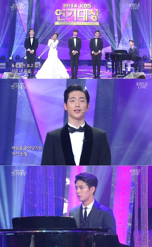 ‘2014 KBS 연기대상’ 신인 연기상 남자 후보들이 ‘렛잇비’ 무대를 펼쳤다.