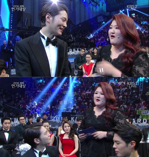 이국주는 “오늘 시상식에 무페이로 왔다. 감독님이 니 마음대로 한다고 해도 됐다”며 주원에게 함께 셀카를 찍자고 제안했고, 주원은 흔쾌히 응했다. 부러워하는 팬들의 함성소리에 이국주는 “그럼 니들도 살 찌워서 개그맨해라”고 말해 좌중을 폭소케 했다.
