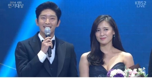 배우 이준기와 남상미가 ‘2014 KBS 연기대상’에서 베스트커플상을 받았다.