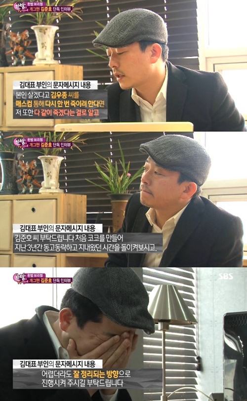 4일 방송된 SBS '한밤의 TV연예'에서는 김준호와의 인터뷰가 공개됐다. 김준호는 “김우종 대표 부인이 협박까지 했다”며 방송을 통해 문자 메시지 내용을 공개했다.