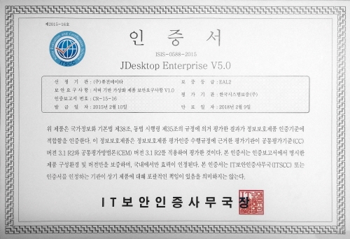 이번 CC인증획득은 ‘JDesktop Enterprise V5.0’의 대표적인 암호화 알고리즘(SHA-256 bit, AES-256 bit, RSA-2048 bit)을 활용하여 강력한 보안성을 검증 받은 사례가 됐다. 또한 시스템 운영 시 발생되는 모든 기록을 저장, 감사정보가 누락돼 발생할 수 있는 사고를 미연에 방지하도록 조치했다.
