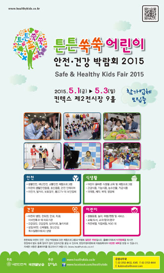 [쿠키뉴스=송병기 기자] 국민안전처와 국민일보가 공동 주최하는 ‘2015 튼튼쑥쑥 어린이 안전·건강 박람회(Safe & Healthy Kids Fair 2015)’가 오는 5월 1일부터 3일까지 3일간 고양시 킨텍스 제2전시장 9B홀에서 개최된다.