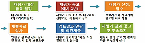 의료기기위원회 심의를 거쳐 재평가 대상품목을 선정하고, 업체로부터 관련된 품목에 대한 안전성 정보 자료 등을 제출 받아 재평가를 실시하게 된다.