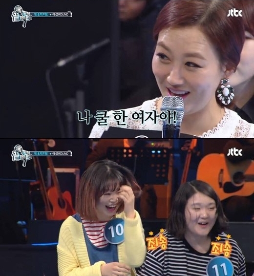 노홍철이 언급되자 가수 문희준은 황급히 선곡단을 말렸고, 장윤정은 웃음을 터트렸다. 그는 “그걸 날 보면서 얘기하는구나”라며 “뭐 어때. 나 쿨한 여자야”라고 말해 웃음을 자아냈다. hye@kmib.co.kr