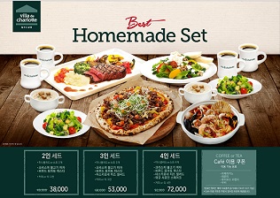 새롭게 선보이는 빌라드샬롯 ‘베스트 홈메이드 세트’는 에피타이저, 메인메뉴, 디저트로 구성된 코스 형의 세트 메뉴로 2인~4인 세트로 운영된다.
