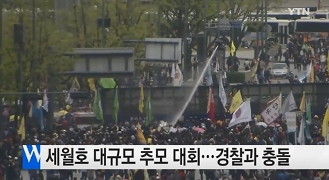 [쿠키뉴스=이혜리 기자] 18일 오후 서울 시청 앞 서울광장에서 열린 ‘세월호참사 범국민대회’ 참가자들이 경찰과 충돌했다.