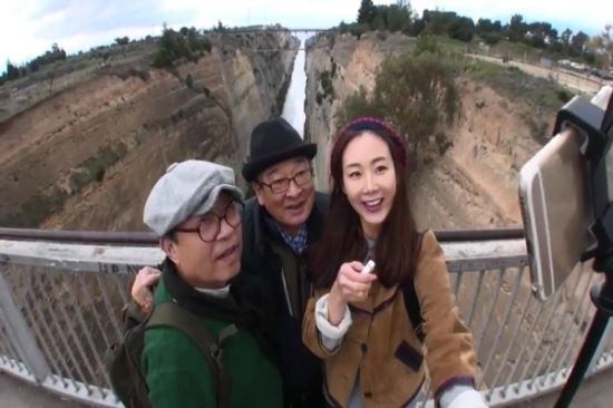 최지우는 단독 가이드로 나서 할배들에게 에게해와 이오니아해를 이어주는 어마어마한 규모의 운하로 유명한 코린토스를 소개한다.