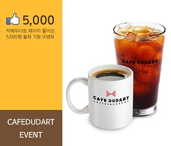 이번 이벤트 참여 방법은 카페두다트 페이스북(http://www.facebook.com/cafedudart)에서 5000명 돌파 기원 이벤트 게시물에 축하 댓글을 작성하고 함께 공유하고 싶은 친구를 태그하면 된다.