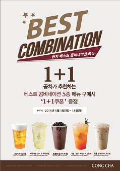 [쿠키뉴스=이훈 기자] 차 전문 프랜차이즈 공차코리아는 ‘베스트 콤비네이션 1+1’ 프로모션을 오는 5월 1일부터 14일까지 2차로 실시한다.