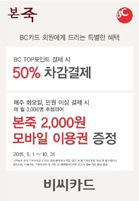 더불어 BC카드 TOP 포인트 이용고객 중 매월 2500명 씩 추첨해 TOP포인트 2000점을 추가 적립해 줄 예정이다.