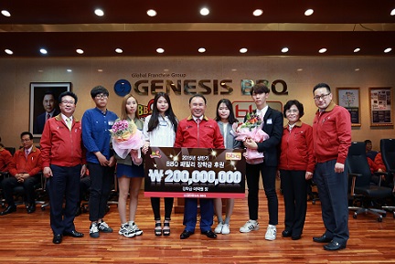 [쿠키뉴스=이훈 기자] 프랜차이즈 그룹 제너시스BBQ은 지난 6일 경기 이천 치킨대학에서 ‘제너시스BBQ 그룹, 2015 상반기 패밀리(가맹점주) 장학금 수여식’ 을 가졌다.
