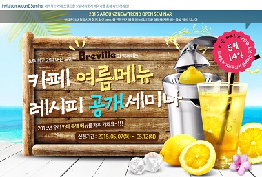 이번 행사는 호주 가전 브랜드 ‘브레빌’과 함께 어라운지 사업자 회원을 대상으로 진행되며 어라운지의 음료 메뉴 개발 전문가가 전하는 여름 메뉴 트렌드 전망과 추천 레시피에 대해 배울 수 있다. 또한 브레빌 주스 머신 체험 기회와 선착순 20명에게 해당 머신 25% 할인쿠폰을 제공한다. 참가자 전원에게는 어라운지에서 사용 가능한 10%할인 쿠폰을 증정한다.