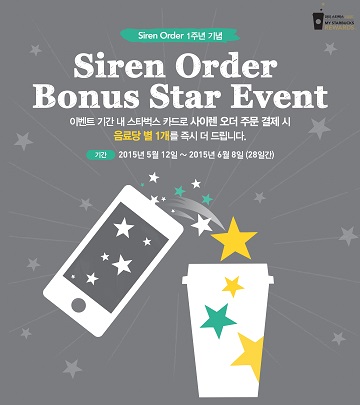 28일간의 이벤트 기간 동안 스타벅스 카드로 ‘사이렌 오더’를 이용해 음료를 주문 및 선 결제하면 기존에 지급되던 방문당 별 1개를 비롯해 음료당 별 1개씩이 추가로 증정된다.
