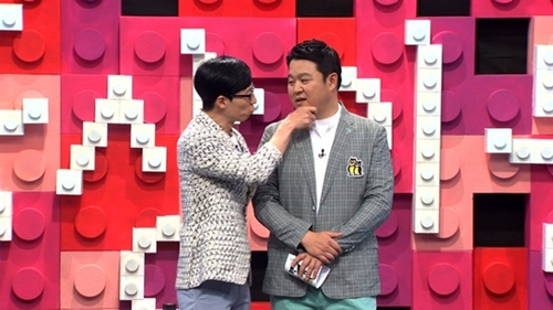 유재석은 녹화가 시작 되자마자 이어진 김구라의 착한 멘트를 듣고 애정을 드러냈다. 바로 김구라의 트레이드마크인 ‘아래 턱’을 부여잡고 “아주 귀여워 죽겠다”며 세차게 흔든 것.