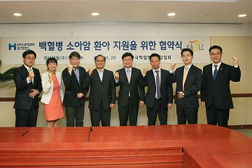 현대제철 영업본부는 지난 28일 서울 양재동 본사 16층 대회의실에서 한국백혈병소아암협회와 '백혈병소아암 환아 지원 협약식'을 체결했다.