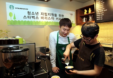 [쿠키뉴스=이훈 기자] 스타벅스커피 코리아는 가출, 탈북, 다문화 등 다양한 배경의 청소년들을 대상으로 바리스타 진로 탐색과 직업 체험의 기회를 제공하는 재능기부 활동을 전국 14개 청소년 지원시설에서 전개한다.