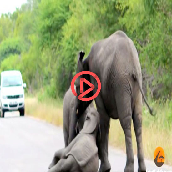 하지만 아기 코끼리는 좀처럼 일어나지를 못하는데요.