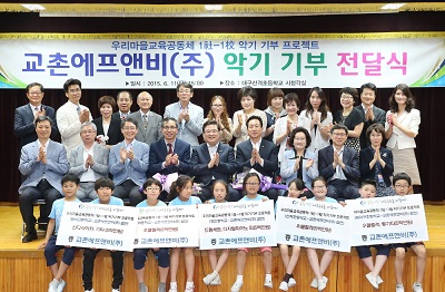 [쿠키뉴스=이훈 기자] 교촌에프앤비㈜는 대구 지역 5개 학교에 2500만원 상당의 악기를 지원한다는 내용의 기부 증서 전달식을 진행했다.