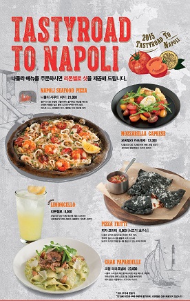 새롭게 출시하는 나폴리 관련 신메뉴는 오징어 먹물 도우에 토마토 소스를 바르고 새우, 모짜렐라 치즈, 레몬을 올린 ‘나폴리 시푸드 피자’와 삼각형 모양으로 바삭하게 튀긴 피자인 ‘피자 프리티’가 있다. 특히 피자와 프리티에 쓰이는 토마토 소스는 나폴리 제품을 직수입해 사용하는 등 본토의 맛을 구현하는데 힘썼다.