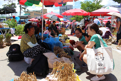 아시아나항공 임직원 50여명은 가족들과 함께 지난 27일 인천광역시 강화군 강화읍에 위치한 강화 풍물시장을 찾아 나물, 견과류, 수산물 등 지역 특산물과 필요 물품을 구매하고 근방에 위치한 유적지인 고려궁지를 관광했다.