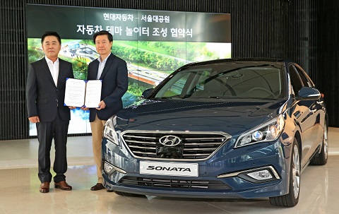 현대차는 30일 서울 강남구 현대차 국내영업본부 사옥에서 서울대공원과 '자동차 테마 놀이터' 조성 협약식을 가졌다.