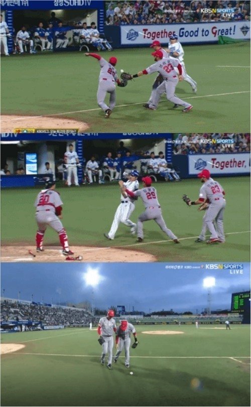 사건의 진상은 경기를 생중계한 KBS N SPORTS 카메라를 통해 밝혀졌다. 김광현 글러브에 공이 없는 장면이 그대로 잡혔고 야구 팬들은 깜짝 놀랐다. SNS와 인터넷 커뮤니티에는 김광현과 심판에 대한 비판이 쏟아졌다, 삼성이 연장 접전 끝에 2대1로 승리했기에 망정이지 승패가 뒤바뀔 수도 있었던 상황이었다.