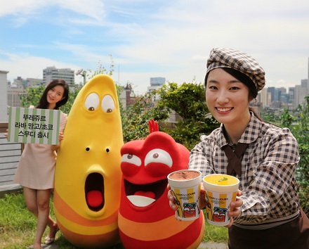 ‘라바 스무디’는 시원하고 달콤한 스무디를 귀여운 캐릭터 컵에 담아 보는 재미를 더한 것이 특징이다. 슬랩스틱코미디 에피소드로 남녀노소 모두가 좋아하는 애니메이션인 라바의 캐릭터가 생동감 있게 그려진 컵에 담아 판매한다.