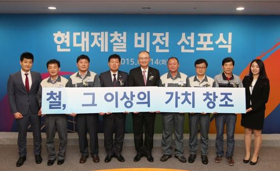 현대제철은 14일 서울 양재동 본사에서 열린 비전 선포식에서 ‘철, 그 이상의 가치 창조(Engineering the Future beyond Steel)’라는 새로운 비전을 선보였다.