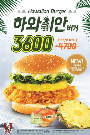 [쿠키뉴스=이훈 기자] 치킨 전문 브랜드 KFC는 무더운 여름철을 맞아 열대과일의 풍미와 하와이의 분위기를 물씬 느낄 수 있는 ‘하와이안 버거’를 22일부터 출시한다.