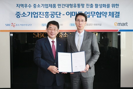 [쿠키뉴스=이훈 기자] 중소기업진흥공단은 ㈜이마트와 22일 서울 목동 중진공 서울사무소에서 우수 중기제품의 민간대형유통망 진출 활성화를 위한 업무협약을 체결했다.
