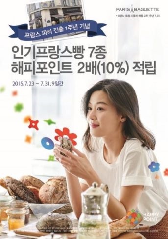 파리바게뜨는 프랑스 파리 첫번째 매장인 샤틀레점의 개점 1주년을 기념해 오는 31일까지 프랑스빵 7종을 구매하는 고객들을 대상으로 해피포인트 2배 (10%) 적립 혜택을 제공한다.