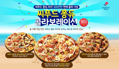 도미노피자에서 여름 신메뉴로 야심차게 준비한 ‘씨푸드 퐁듀 피자’는 올해 출시된 신제품 피자 중 최단 기간 동안 밀리언셀러를 달성한 제품이다. 씨푸드의 대표격인 새우, 홍게살, 통관자와 퐁듀치즈소스를 가득 담아 풍성한 맛과 다양한 식감을 느낄 수 있는 것이 특징이다.