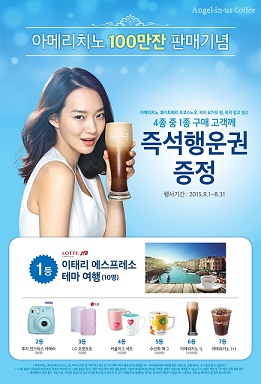 엔제리너스커피는 아메리치노 출시 3개월 만에 100만 잔 판매 돌파를 기념해 8월 한 달간 올해 선보인 여름 신제품 아메리치노, 화이트베리 초코스노우, 피치 요거트 빙,