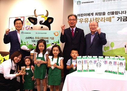 이날 전달된 기금은 2월 9일부터 6월 29일까지 전개한 스타벅스의 국산우유 소비촉진 캠페인인 ‘우유사랑라떼’ 캠페인 음료 1잔 판매당 100원씩 적립해 조성된 금액이다.