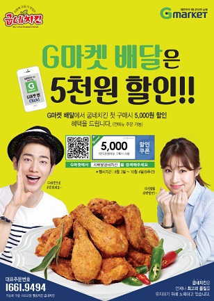 이번 이벤트는 굽네치킨이 지마켓의 배달 서비스인 ‘G마켓 배달’과 제휴를 맺은 것으로 G마켓 배달을 사용해 굽네치킨 첫 구매 시 바로 사용 가능한 5000원을 할인 쿠폰을 제공해주는 행사다. 이벤트 기간은 오는 10월 4일까지 9주간 진행한다. hoon@kukinews.com