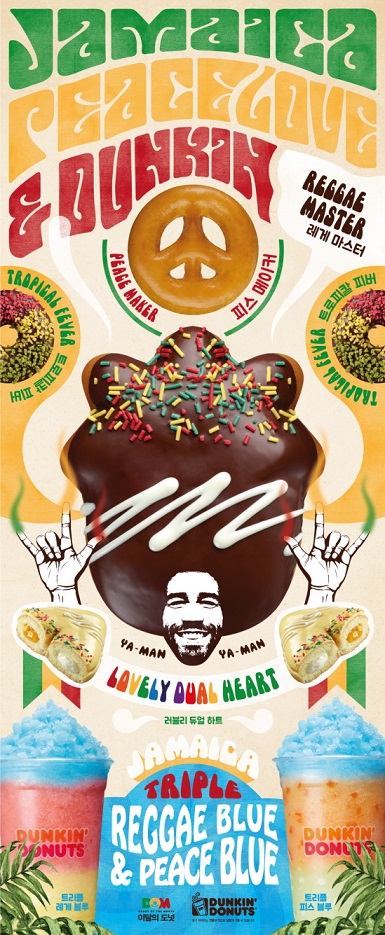 우선 오는 10일까지 던킨도너츠 매장에서 신제품 ‘레게도넛’ 4종(레게 마스터, 트로피칼피버, 피스메이커, 러블리듀얼 하트), 자메이카 음료 2종(트리플레게블루, 트리플피스블루), 던카치노 3종(카라멜, 피칸, 카푸치노) 등 해피아이템을 구매하면 해피포인트 3배 적립의 혜택을 누릴 수 있다.