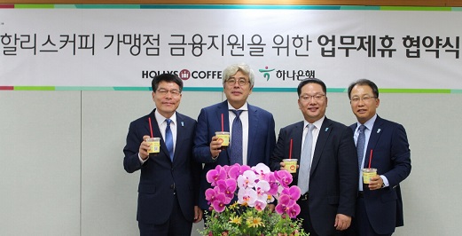 [쿠키뉴스=이훈 기자] 커피전문점 할리스커피는 예비 창업주 및 기존 가맹점주의 안정적인 매장운영과 지속 성장을 위해 하나은행과 손잡고 금융지원을 위한 업무협약을 체결했다고 5일 밝혔다.