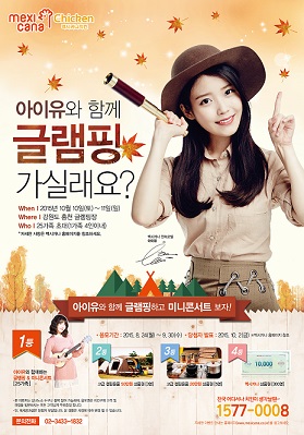 [쿠키뉴스=이훈 기자] 치킨 프랜차이즈 멕시카나에서는 고객과 함께하는 1박 2일 '아이유와 함께 글램핑 하고 미니콘서트 보자' 이벤트를 진행한다.