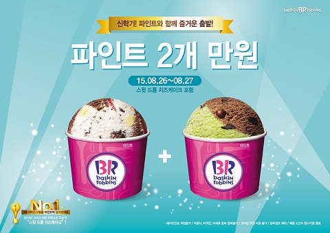 [쿠키뉴스=이훈 기자] 배스킨라빈스는 27일까지 파인트 사이즈 아이스크림 2개를 1만원에 제공하는 ‘신학기 응원’ 파인트 프로모션을 진행한다.
