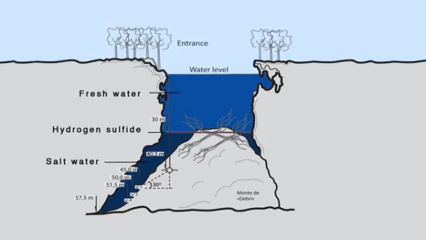 30~60m까지 해수 층으로 이루어진 '세노테 안젤리타'.