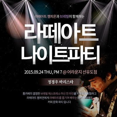 라떼아트 나이트 파티에서는 정경우 바리스타에게 직접 다양한 라떼아트 노하우를 배우고 전문가들이 사랑하는 브랜드 ‘브레빌’의 가장 인기 있는 에스프레소 머신 3종을 자유롭게 체험하고 비교할 수 있다. 또한 미니 라떼아트 챔피언십을 통해 참가자 중 최고의 아티스트를 선발한다.