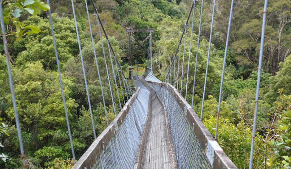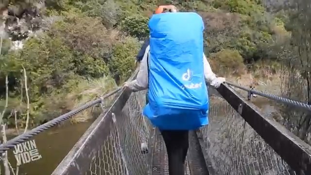 이들은 호수에 설치된 현수교를 건너게 됐는데요,