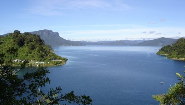 뉴질랜드 노스 아일랜드에 있는 와이카레모아나(Waikaremoana) 호수로