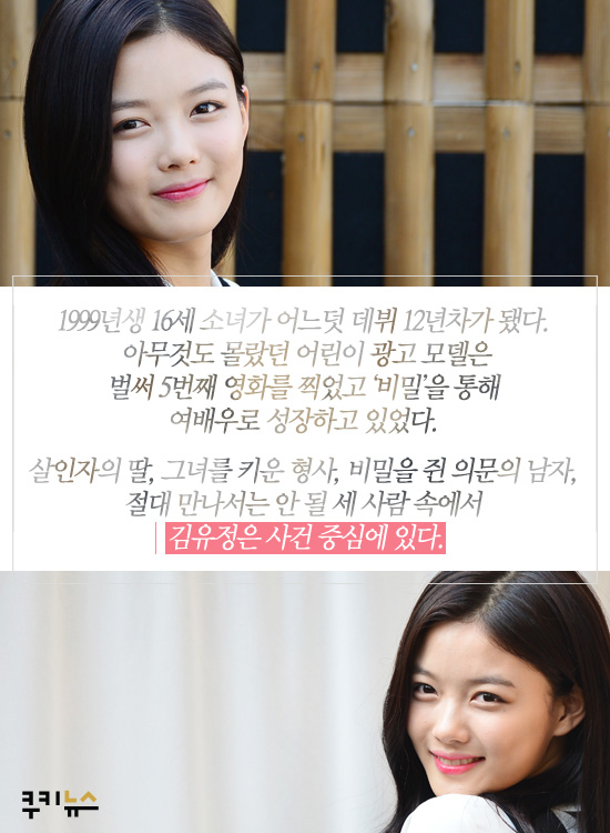 1999년생 16세 소녀가 어느덧 데뷔 12년차가 됐다. 아무것도 몰랐던 어린이 광고 모델은 벌써 5번째 영화를 찍었고 ‘비밀’을 통해 여배우로 성장하고 있었다. 살인자의 딸, 그녀를 키운 형사, 비밀을 쥔 의문의 남자, 절대 만나서는 안 될 세 사람 속에서 김유정은 사건 중심에 있다.