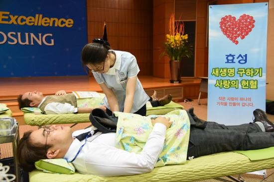 효성은 본사뿐만 아니라 울산?구미?창원 등 주요 지방사업장에서 매년 ‘사랑의 헌혈 행사’를 정기적으로 진행하고 있다.