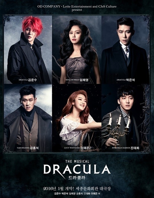 ‘드라큘라’에는 김준수, 박은석, 임혜영, 강홍석, 진태화, 이예은 등이 출연한다. 오는 1월 23일부터 2월 9일까지 단 2주간의 한정된 공연으로 세종문화회관 대극장에서 관객들과 만날 예정이다. hye@kmib.co.kr