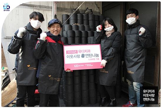 유디치과는 지난해 12월 ‘사랑의 연탄 나눔 운동’ SNS 이벤트를 통해 적립된 300만원 상당의 연탄 5000장을 (사)따뜻한 한반도 사랑의 연탄나눔운동에 지난 14일 기부했다. 이와 더불어 유디치과 직원들과 자원봉사자 총 30여 명은 수혜자 가구를 직접 방문해 사랑의 연탄을 배달하는 자원봉사활동을 진행했다.