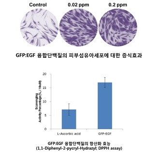 이에 반해 넥스젠에서 개발한 고 기능성 신소재 GFP:EGF 융합단백질은 피부 개선 효능뿐만 아니라 중성의 수소 이온 농도(pH 6.8~7.2) 및 공기 중에서 안정하며 항산화 효능도 매우 우수한 것으로 밝혀졌다. 본 융합단백질은 인간에 무해하며 피부 주름 개선 및 항산화 효능이 우수한 신소재로써, 고 기능성 스킨케어 제품 개발에 새로운 방향을 제시할 것으로 회사 측은 기대했다.