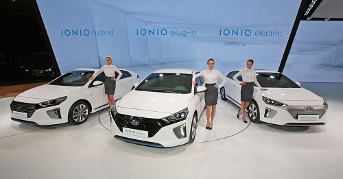 이번 모터쇼에서 현대자동차는 지난 1월 국내에서 출시한 하이브리드(HEV) 모델에 이어 플러그인 하이브리드(PHEV)와 전기차(EV) 모델을 세계 최초로 공개하며 친환경 전용 모델 아이오닉의 라인업을 완성했다.