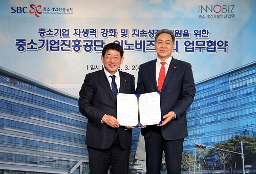 [쿠키뉴스=이훈 기자] 중소기업진흥공단과 이노비즈협회는 2일 서울 목동 서울사무소에서 중소기업 자생력 강화와 지속성장 지원을 위한 업무협약을 체결했다.
